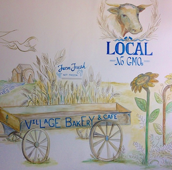 Experienced in painting signs and murals of many sizes, shapes and styles. This is the latest installment for the Village Bakery & Cafe in Pittsford, NY. Please visit them at 5 State St. in the village, or their website, www.villagebakeries.com